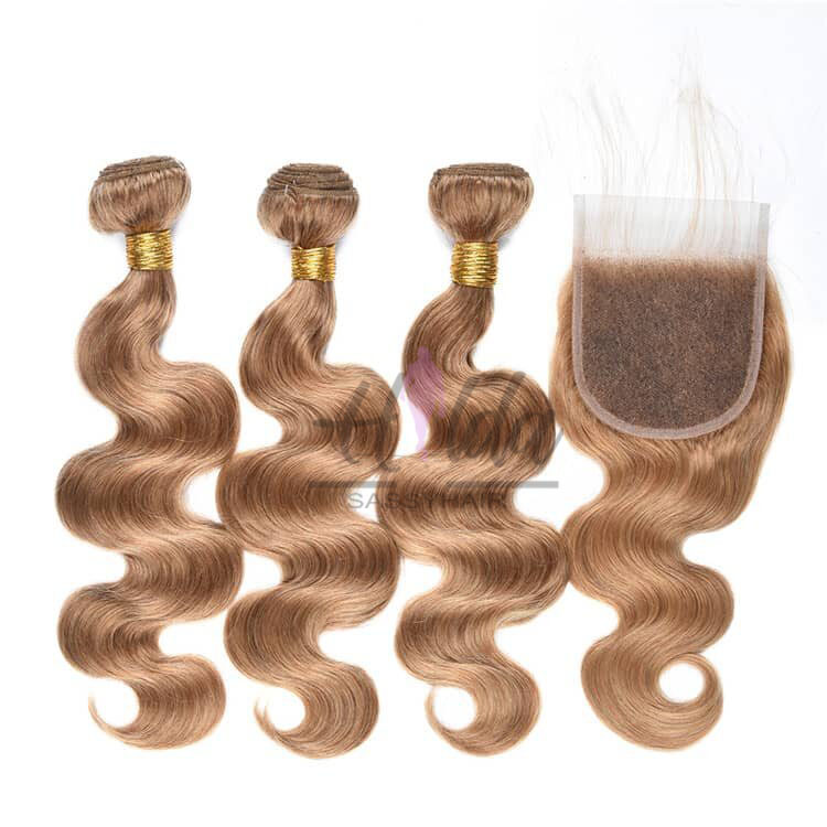 This is a dirty blonde body wave in color 27# and a matching lace closure.